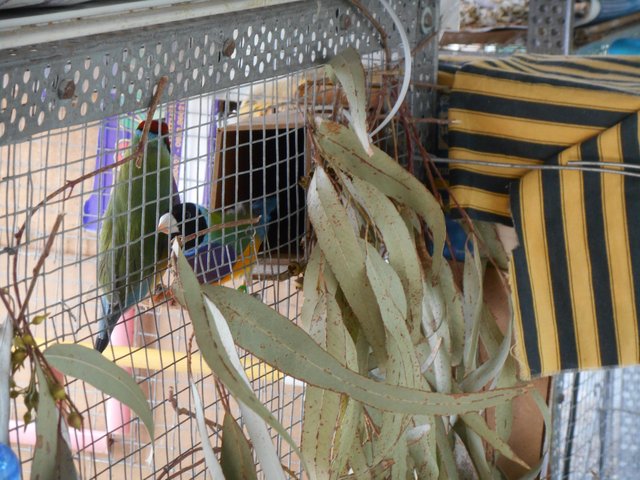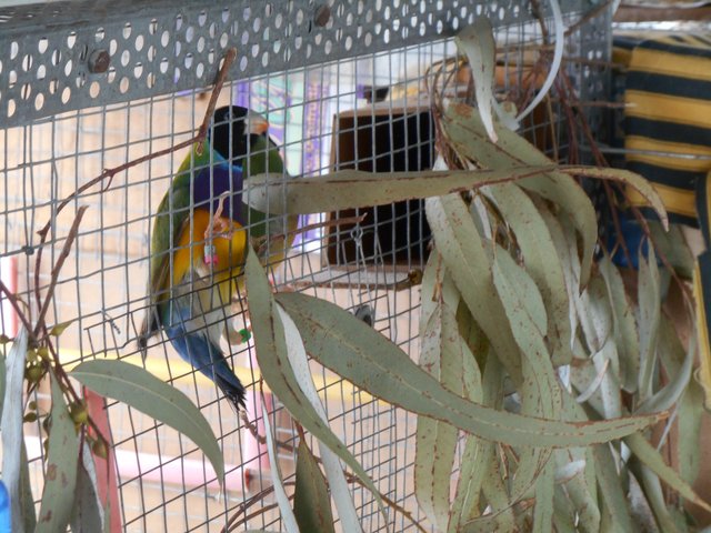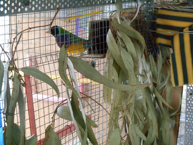 Io misi rami con foglie di eucalipto perché è proprio su questi alberi che i Gould si riproducono maggiormente.